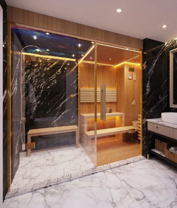 Phòng xông hơi hiện đại không chỉ là tiện ích chăm sóc sức khỏe mà còn là điểm nhấn đẳng cấp cho biệt thự, spa và resort.
